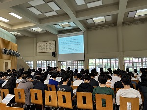 4月11日に、新入生を対象とした進路説明会を実施しました。本会では、高校生活を通じて目指すべき大学進学の方向性と、日々取り組むべき具体的な活動について共有しました。