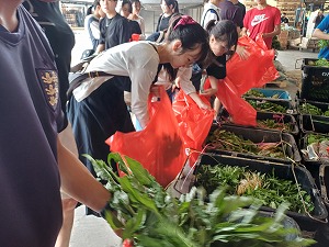 今回は、国際的な社会福祉団体であるライオンズクラブの活動に参加しました。本活動は、トニー・テイ氏が創設したWilling Heartsや低所得者層へ食べ物を届ける活動を行っています。今回は寄付された野菜をコンテナからビニール袋に詰め替える作業やそれらをトラックにのせる活動を行いました。