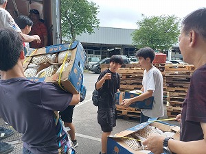 生徒たちは地元の方々と交流しながら作業を行いました。また、ライオンズクラブの方から、これらの野菜がどこから来るのか、どこへどうやって渡されるのかといった活動の説明を受けていました。