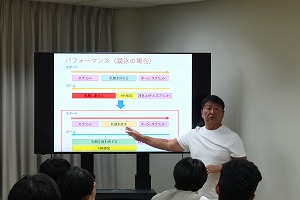 最新の水泳理論や練習メニューについてスポーツ科学や運動生理学の観点から分かりやすく説明をしてくださり、部員は多くのことを吸収しようと、そのお話に耳を傾けていました。