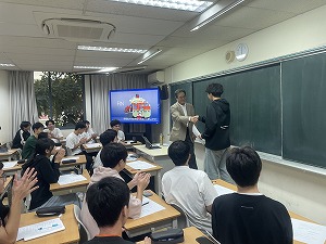 早稲田大学法学部の箱井教授にお越しいただき、「海法の変遷とその特色ある制度」というタイトルで模擬講義をしていただきました。本講義では、海法や海商法の歴史的背景から現代に至るまでの発展、国際的な法律制度の重要性について詳しく解説されました。日々目にするシンガポール港や世界各地から集まる船舶をイメージしながら、国際的な法律がどのように関わっているのかについて理解を深めることができたようです。