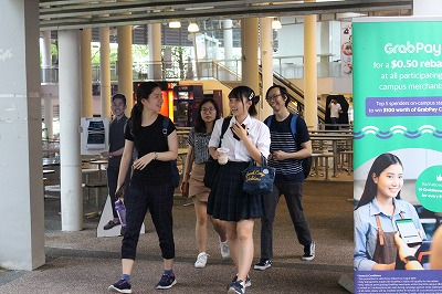 NUSにて日本語の授業を受講している学生と本校の生徒が数名のグループに分かれて、プレゼンテーション発表、グループディスカッション、キャンパスツアーを行いました。プレゼンテーションとディスカッションでは普段の生活や学業、またお互いの文化について意見の交換を行い、有意義な交流を実施することができました。キャンパスツアーではリラックスしながら大学の雰囲気を味わい、さらに交流を深めていました。交流中は、お互いが普段学んでいる言語を使いながら、臆せずコミュニケーションを楽しむ姿が印象的でした。