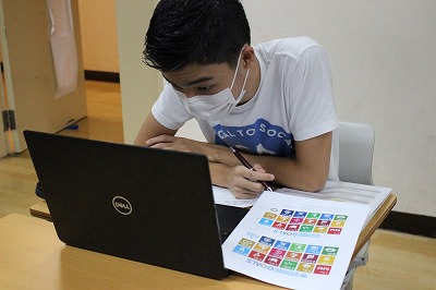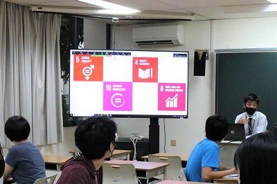 第1回講座は、11月19日(木)の放課後に「SDGsについて知ろう」というテーマのもとに開かれ、1・2年生の希望者が受講しました。SDGsが採択された背景やSDGsが目指すところについて学ぶだけでなく、日常生活における様々な場面でSDGsがどのように関わっているのかを考え、講座の後半では英語で意見を交換し合いました。