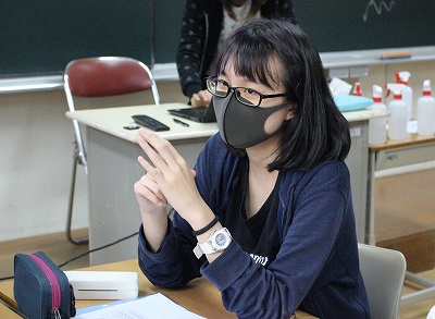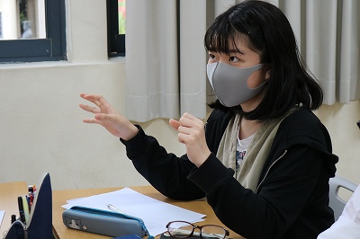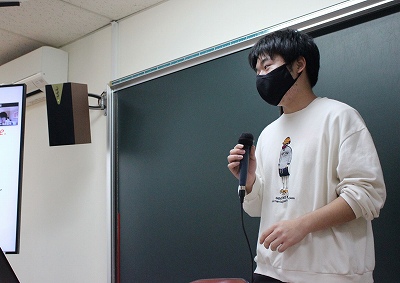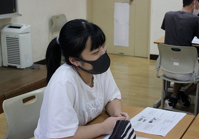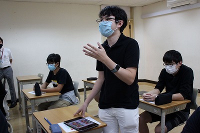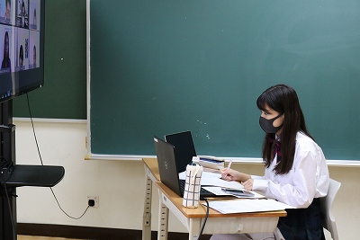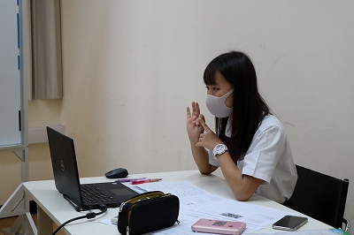 事前講座の後には、当日、全体に向けてプレゼンテーションを行う生徒が、実行委員の生徒を相手に発表練習を行いました。Zoomを使ってのプレゼンテーションとなること、マスクを着けた状態で話さなくてはならないこと等、今までとは違って新たに意識しなくてはいけないこともあります。参加者に伝えたいメッセージが十分に伝えられるよう、納得のいくまで練習を重ねてほしいと思います。