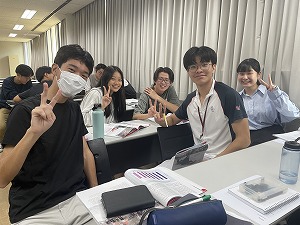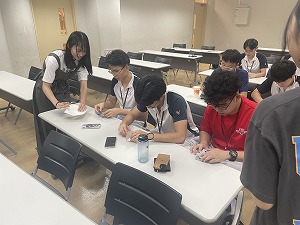 一日目は、バディ生徒と一緒に授業体験を行い、日本語での授業に挑戦しました。少しでも多く授業内容を伝えようと、一生懸命英語で説明するバディ生徒の様子が見られました。放課後には、本校国際交流委員による交流セッションが行われ、Kahoot!を使ったクイズ大会は大いに盛り上がりました。