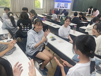 初めて体験する日本の文化に興味津々のDHSの生徒の皆さんと、自国の文化を伝えることに喜びを感じる本校の生徒たちの笑顔が印象的でした。共に活動する中で、言葉だけでなく、表情やジェスチャーを通しても心が通じ合い、友情が育まれる様子が見られました。