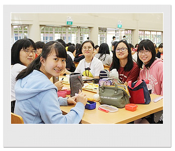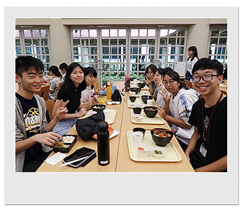当日はサポーター役の生徒のクラスで一緒にホームルームや授業を受けたり、生徒ホールで昼食を取ったりしました。MOELCの生徒にとっては、日々一生懸命学習している日本語で授業を受け、日本の学校生活を体験することができ、非常に新鮮で有意義な時間を過ごすことができたようです。