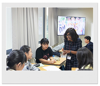 参加生徒は予め講師の方から課せられた「杖の意味やムルガンについて」調べ学習を行い事前学習に臨みました。講師の方からは、タイプーサムの語源、シンガポールでの歴史、そして信者の方が行進で使うカバディやミルクがどのような意味を持っているのか、などについて一つひとつ丁寧な説明を聴き、タイプーサムへの理解を深めました。