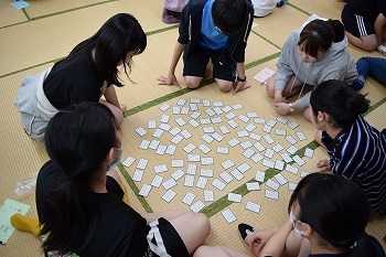 詠み上げられた最初の1字で反応できる程レベルの高い生徒と、上の句が終わる頃に漸く動き始められる生徒では、大きなレベルの差がありましたが、全体としては和気藹々とした雰囲気の中で、日本の伝統文化である和歌に親しむ姿が見られました。