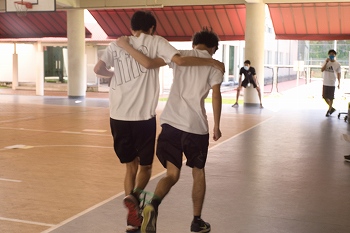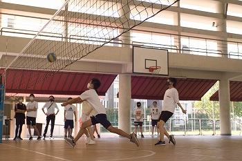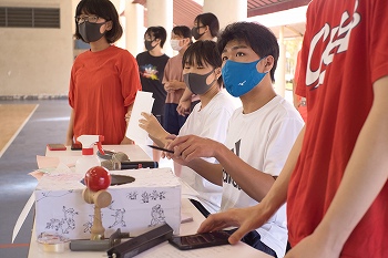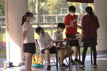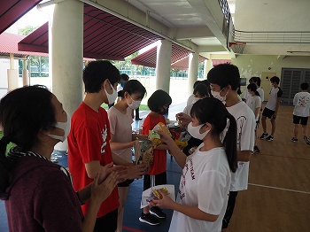 シンガポール国内のコロナ規制を遵守しながら、紅白の2チームに分かれて「ソフトバレーボール」「巨大すごろく」の2種目でお年玉をめぐって競い合い、最後は全員でお手製のおみくじを引きました。
