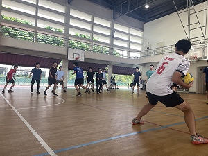 1種目のドッジボールは男女別でそれぞれ2回戦を行い、白熱した試合を繰り広げました。特に男子のスピード感のあるボールさばきは見ものでした。