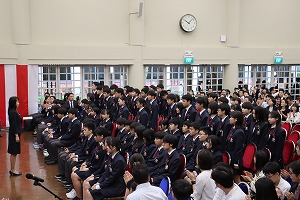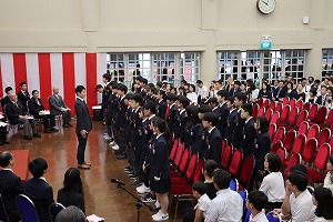 新入生代表宣誓では、本校の教育目標である「『自調自調』に基づき、自ら考え深く学び、将来自分がなりたい姿に近づけるよう日々精進していきます。」「様々な国から縁あって集まった私たち。切磋琢磨し、皆で高め合うことができる関係を築いていきます。」という力強い決意表明がありました。そして在校生からは、「仲間との交流から生まれる他愛のない会話や最高の思い出は、自分の価値観や考え方を広げ、自分の将来像を鮮明にしていきます。だからこそ、早稲渋での出会いを、経験を、大切にしてください。」という歓迎の言葉が述べられ、厳粛かつ温かな雰囲気に包まれた入学式となりました。