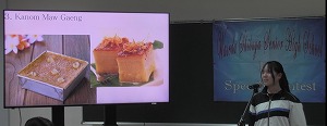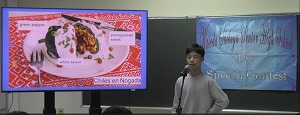 Students were required to memorize their speeches and used cue cards with bullet points during their presentations to support their delivery. They also designed slides to accompany their speeches and visually support what they were talking about. Among countries that were chosen were Mexico, Thailand and Peru.