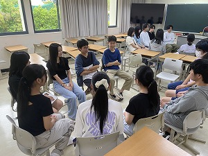 11月29日(金)の自調自考の時間を使って、3年生と2年生の合同による、修学旅行ホームステイ座談会を行いました。