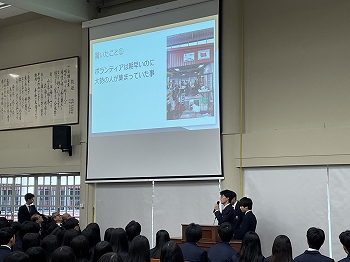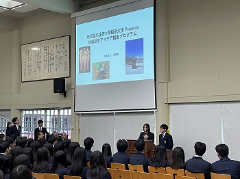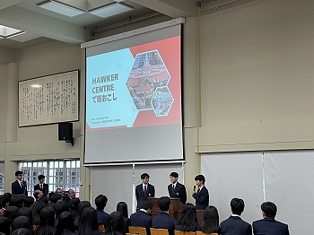 終業式後には生徒による活動報告が行われ、前述のビジネスプランコンテストに加え、埼玉県本庄市と早稲田大学による地域創生アイデア創出プログラムへの参加・受賞、マグサイサイ賞受賞者Tony Tay氏が主宰する「Willing Hearts」でのボランティア活動など、今学期の課外活動における顕著な活躍が紹介されました。