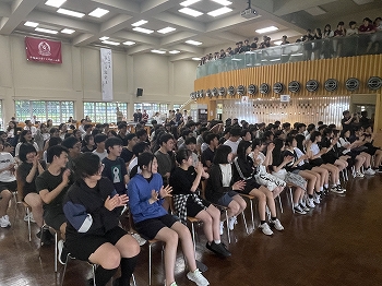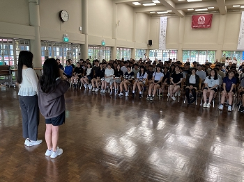 また、部活動の紹介では、それぞれの部がしっかりとPRを行い、1年生の心を魅了しました。オリジナルの動画を制作している部もあれば、スライドをもとにわかりやすく魅力を伝えている部もあり、実演パフォーマンスを行う部もありました。1年生にとっては、いずれの部も魅力的に映ったことと思います。これから様々な部を体験しながら、自分に合う部活動を見つけていきます。