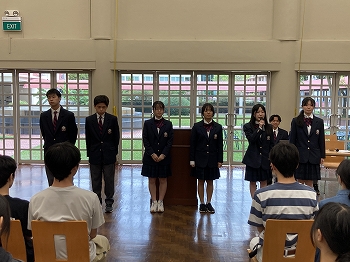 全ての議事が承認された後、新旧役員の交代式が行われました。旧役員からは、1年間の任期を全うした達成感と、支えてくれた仲間や先生方への感謝の言葉が述べられました。それに対し、先日の選挙で選ばれた新役員からは、これからの学校を担う新鮮な決意が力強く語られました。この瞬間、旧役員から新役員へと、情熱と責任が詰まったバトンが確かに託されました。