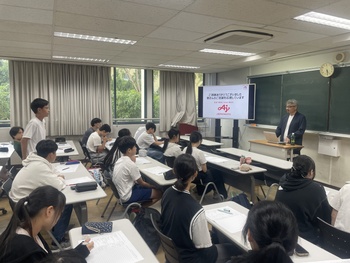 講演の後半では、「自分の志やビジョンを見つけ、社会にどう貢献するかを考えてほしい」と熱いメッセージをいただき、生徒一人ひとりが将来のキャリアについて真剣に考える貴重な機会となりました。自身の経験をもとに語られた「食」が人に与える力や喜び、そしてそこから導き出された職業選択の理由には、生徒たちも深く共感している様子でした。小澤様、心に響く講演を誠にありがとうございました。