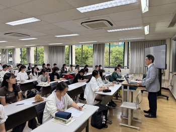 講義では、自治体が国境を越えて交流する「自治体外交」について、その定義や鹿児島県とシンガポールの交流といった具体例が紹介されました。本来は国が担う「外交」を自治体が行うことについて、法的な観点からその意義や課題にも触れられました。