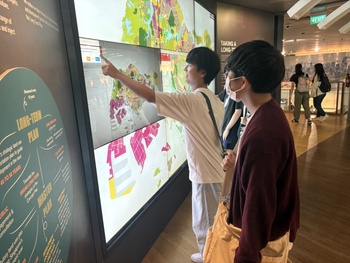 午前中に訪れたSingapore City Galleryでは、都市の発展や土地利用の工夫について学びました。展示されているシンガポール全体の大きな模型を前に、生徒たちは街づくりの変遷を興味深く観察していました。過去から現在に至る都市の発展が写真や映像でわかりやすく紹介されており、生徒たちは国の発展を支える都市計画の重要性を実感していました。