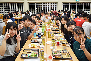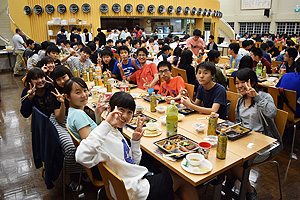 その後、さらに親睦を深めるべく、球技大会特別メニューの夕食を食べながら、球技大会の表彰を行い、新入寮生には歓迎のプレゼントも手渡されました。