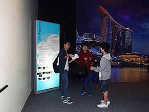 Singapore Discovery Centreでは、館内展示を元に教員が作成したワークシートの問題を解きながら、シンガポールの成長の歴史と現在の特徴について理解を深めました。展示物やビデオコーナー、体験型アトラクション等の各ブースの見学を通じて、シンガポールが今後目指していくものを実感することができました。
