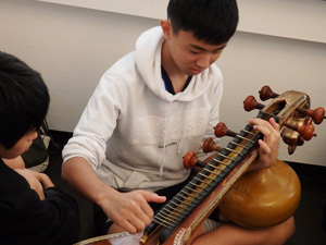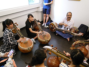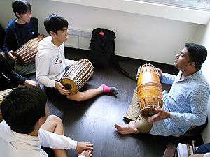 午前中は、ブラスバサーコンプレックスにて、音楽、舞踊、ヨガを体験しました。鑑賞するだけでなく、楽器に触れ、身体を動かすことで、インド文化をより深く感じ、理解することができたのではないでしょうか。