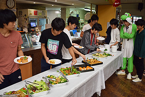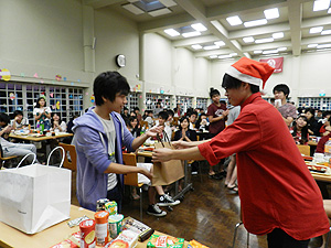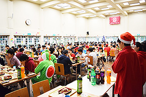 2018年12月19日(水)、生徒ホールで寮生クリスマス会が開催されました。クリスマス会に向け、寮生委員を中心に、多くの寮生が会場の飾りつけなどの事前準備に取り組み、寮生全員でつくりあげる行事となりました。今回のクリスマス会では豪華景品が用意されたビンゴ大会、思い出を振り返るスライドショーに加え、赤・緑・白のいずれかを身につけるというドレスコードを取り入れるなど、新たな取り組みも見られました。クリスマス会特別メニューに彩られたテーブルでは、それぞれが寮生活の思い出を語り合う姿が見られ、終始にぎやかなイベントとなりました。