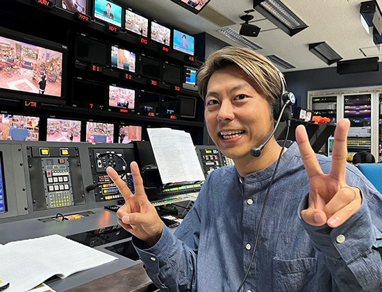 ディレクターは「見てみたいなぁ」を“企画にする”仕事です。面白いと思ったことを、プロフェッショナルの手を借りて番組という形にしていきます。心に残るシーンを記録するカメラマン、現場を盛り上げる芸能人、話を組み立てる編集マン、音楽でグッと引き締める音響マン・・・等、1つの番組に数十人が関わることもあります。