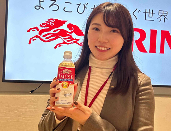 現在私は、量販企業向けに「午後の紅茶」など飲料販売計画のご提案、企業の売上げアップを目指したご提案など、「キリンブランドのファンづくり」をしていく仕事をしております。自社商品を手に取ってくださるお客様を見るたびに、様々な方に商品を届ける喜びを感じられる仕事です。