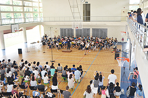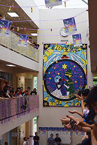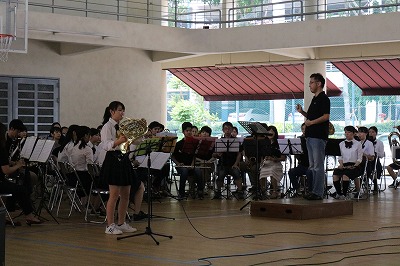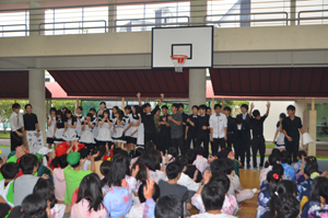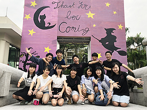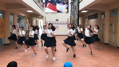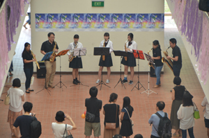 クラス企画以外にも、本校生徒と吹奏楽団WENS(主にシンガポール在留の日本人で構成)との合同演奏会や書道パフォーマンス、かるた部による百人一首デモンストレーション及び体験、仮設ライブハウスでのステージ発表、茶道部によるお手前披露及び体験、国際交流委員会による東西日本ご当地バトル、自然研究部による実験、各教科展示など、日頃の学習や練習の成果を発表し、ローカルのお客様とも交流を深めました。