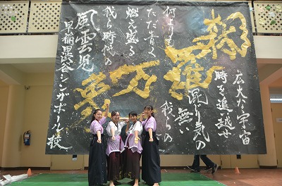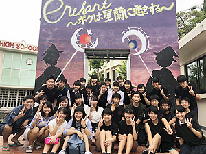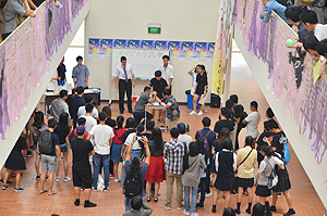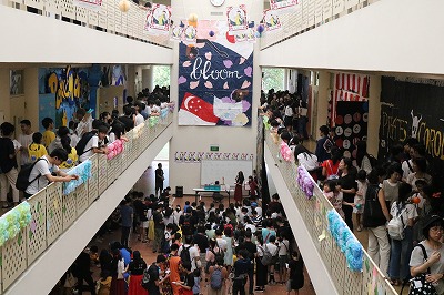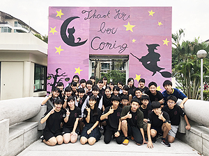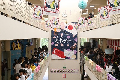 クラス企画以外にも、本校生徒と吹奏楽団WENS(シンガポール在留の日本人で構成)との合同演奏会や書道パフォーマンス、かるた部による百人一首デモンストレーション及び体験、仮設ライブハウスでのステージ発表、茶道部によるお手前披露及び体験、国際交流委員会による東西日本ご当地バトル、自然研究部による実験、各教科展示など、日頃の学習や練習の成果を発表し、ローカルのお客様とも交流を深めました。