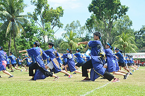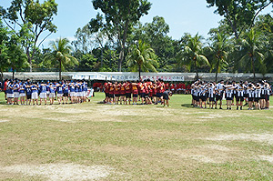 スローガン「轟け青い稲妻の如く 戦え白龍の如く 燃えろ真赤な炎の如く」のもと、第28回体育祭が盛大に行われました。