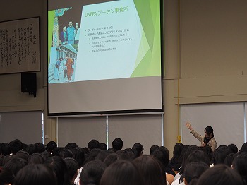 東京大学を卒業された後、NHK入局し3年間ニュース記者として報道に携わり、その後アフリカ・ザンビアのNGOに転職、そしてハーバード大学公衆衛生大学院で修士号を取得し、国連人口基金(UNFPA)ニューヨーク本部アフリカ局プログラムオフィサー、ブータン王国事務所プログラムオフィサー、国連児童基金(ユニセフ)東京事務所広報官として7年間国連でご活躍されたご自身の経験を元に構成されたお話は、すべてが魅力的で刺激に溢れ、あっという間の60分間となりました。