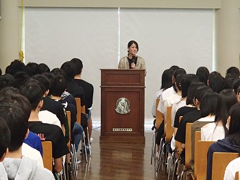 高校時代にアンテナを広く張ること=無駄な勉強などないこと、新しいことにチャレンジすることで自身の可能性は大きく広がること、人間力、特に「誠実であること」・「共感する力」を持つことが大切であることなど、今後の進路を決める、また自身を磨き活躍の場を見出すための多くのヒントを与えて頂きました。