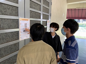 各クラスをさらに3つずつに分けた少人数制の「ゼミ」の中でテーマや調査方法を練り、文献調査の他、アンケートやインタビューなどのフィールドワークも行って、最終的にその成果をポスターにまとめました。