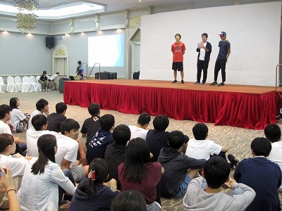 宿泊先のホテルでは、夕食後に研修旅行委員が企画・運営を担当したレクリエーションを行いました。「ピンポン玉レース」やマラッカ散策で学んだことから出題される「○×クイズ」、そして恒例行事ともなっている「フォークダンス」などを行い、学年全体の親睦を深める有意義な機会となりました。