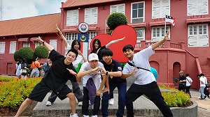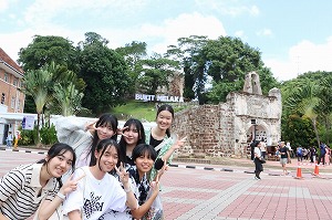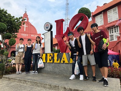 初日は、マラッカ州の州都マラッカへと移動し、ポルトガル料理を中心とした昼食の後、マラッカ市内で班別自主研修を行いました。マラッカは、かつてアジアとヨーロッパを結ぶ重要な港湾都市でした。世界文化遺産に登録されており、オランダやポルトガル、イギリスの文化とマレーシア、中国の文化が溶け合った街です。生徒たちは予め作成した計画書に沿ってマラッカ中心を散策し、シンガポールでは見られない建築物など、マラッカの独創性や融合性にたいへん魅了されたようでした。