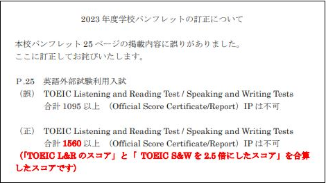 本校パンフレットの掲載内容に誤りがありました、ここに訂正してお詫びいたします。
