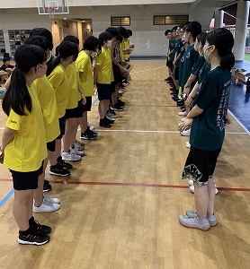 試合後には、後輩から先輩へ記念品の贈呈が行われ、先輩から後輩へ次期部長の任命と、感謝・激励の言葉が送られました。一人一人の言葉が次の世代のバスケ部をより活気づけてくれるものでありました。