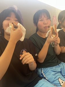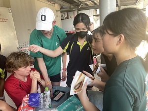 座談会はAISの生徒が作ってくれたホットドックを食べながら交