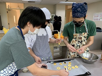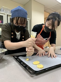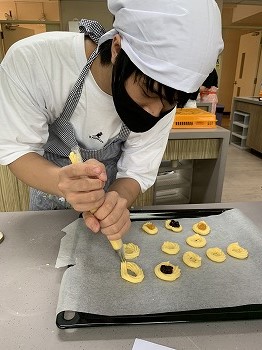 初めはクッキー生地を絞り出すという慣れない作業に苦戦しましたがだんだん慣れていき、最終的にはお店で売られているような可愛い見た目のクッキーが出来上がりました。