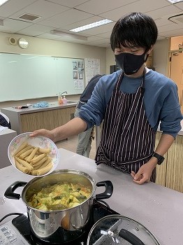 普段馴染みのない料理であることや、1年生の初めての活動ということで不安な点が多々ありましたが、無事美味しく、かつ楽しく、手際よくできたのでよかったです。