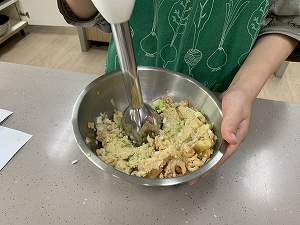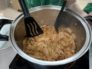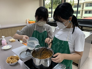 クッキング部ではエビから出汁をとった本格的なラクサを作りました。エビの風味が効いた美味しいラクサを作ることが出来ました。