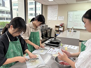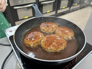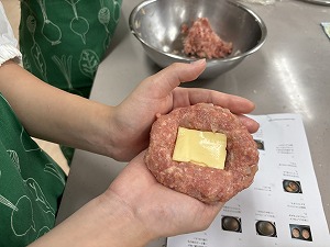今回の調理実習では、ハンバーグの中のチーズをとろけさせることが出来て美味しく作ることができました。