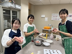 2月7日(水)の活動では、チーズインハンバーグを作りました。調べ学習では、ハンバーグのソースには様々な種類があり、一般的なものとして、牛肉や野菜の出汁をベースにしてワインやトマトケチャップを加えて調理したデミグラスソース、トマトの風味が味にアクセントを加えてくれるケチャップソース、ウスターソースや醤油をベースにしたソースがあり、ソースを変えるだけで様々な味のハンバーグを楽しめることを学びました。