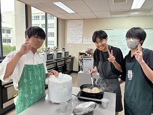 今回の調理実習では、一度フライパンでチキンに火を入れてから炊飯器でお米と一緒に炊くという方法で作りました。味付けが特に難しく、なかなかホーカーで食べるような味を再現することができませんでした。納得のいくチキンライスにはなりませんでしたが、シンガポール文化に触れる良い体験をすることができたと思います。