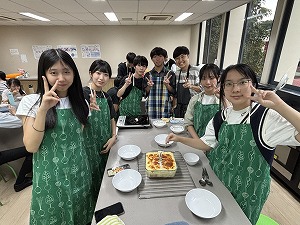 クッキング部はグループごとにテーマを決め、食文化について調べ学習をし、調理実習を行っています。