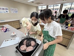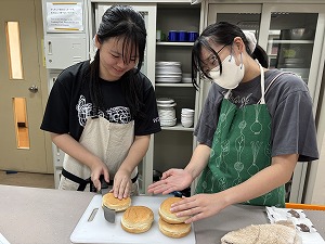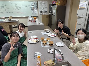 1月21日(火)の活動では、月見バーガーをつくりました。私たちは海外のマックを調べている過程で、「自分達でマックを超える美味しいバーガーを作ろう!」と考え、今回は月見バーガーを再現することにしました。作り方はとても簡単でしたが、その分アレンジのしがいがあり、特に食感にこだわり、外はサクッと中はジューシーな仕上がりにするなど、班によってそれぞれが思う最高の月見バーガーを作ることができました。