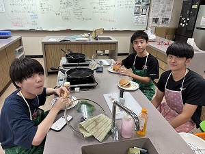 クッキング部はグループごとにテーマを決め、食文化について調べ学習をし、調理実習を行っています。